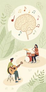 A música atua no cérebro por ativação do lóbulo frontal, produção de dopamina e sincronização com o ritmo. Tem impacto direto na inteligência emocional por regular sentimentos, emoções e interferir com o controle de impulso.